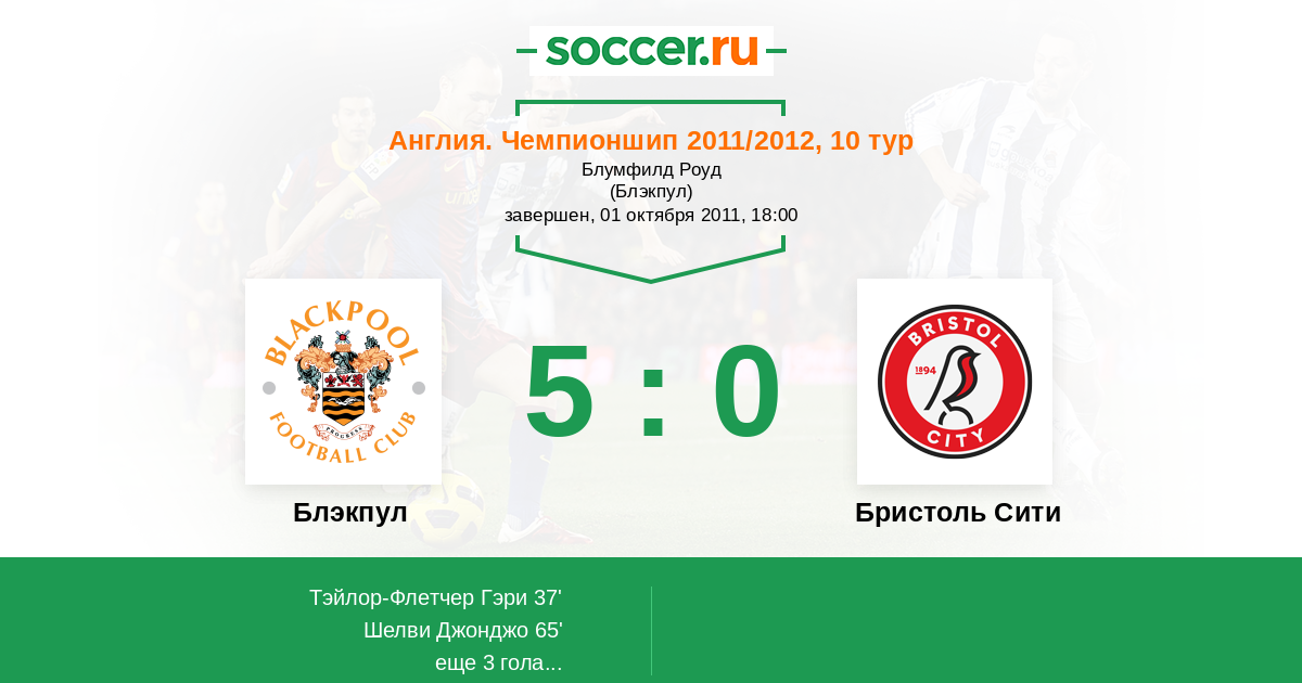 Протокол матча Блэкпул против Бристоль Сити