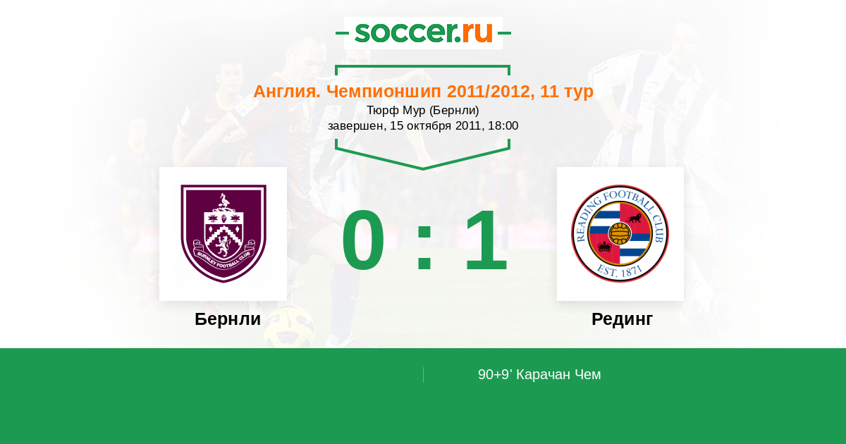 Протокол матча Бернли против Рединг