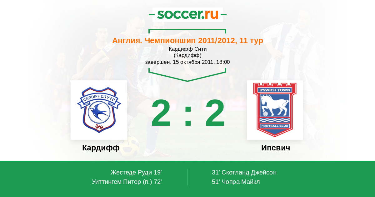 Протокол матча Кардифф против Ипсвич