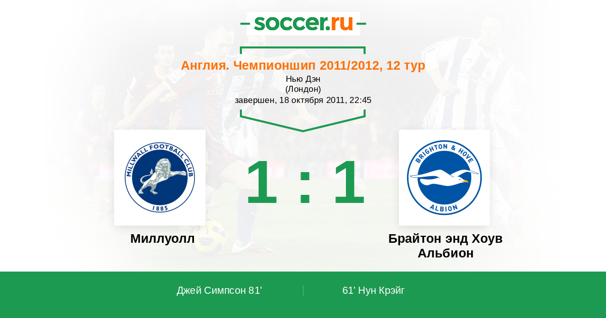 Протокол матча Миллуолл против Брайтон энд Хоув Альбион