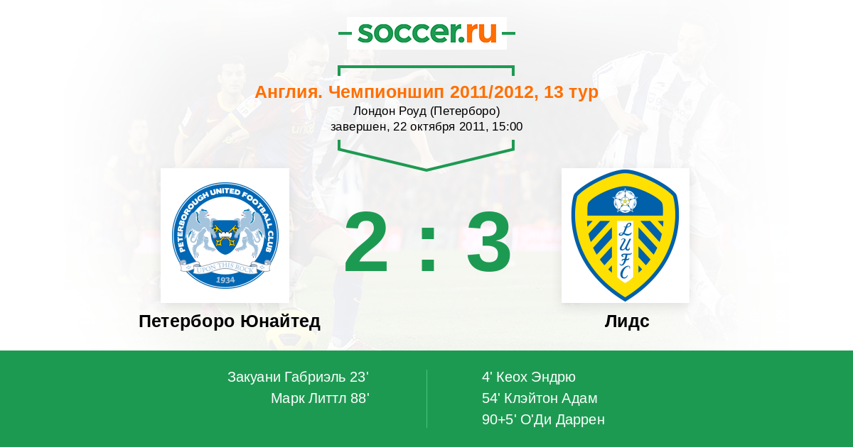 Протокол матча Петерборо Юнайтед против Лидс