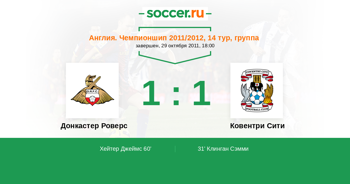 Протокол матча Донкастер Роверс против Ковентри Сити