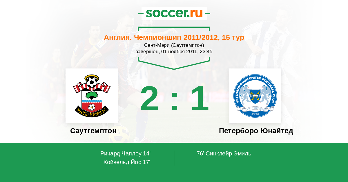 Протокол матча Саутгемптон против Петерборо Юнайтед