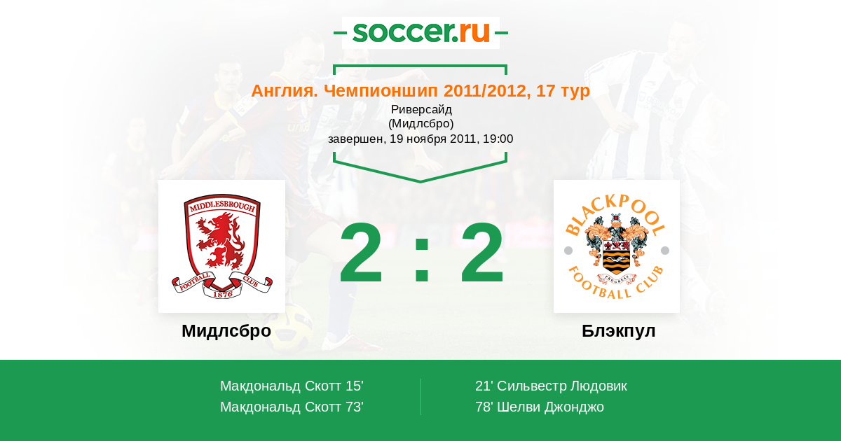 Протокол матча Мидлсбро против Блэкпул