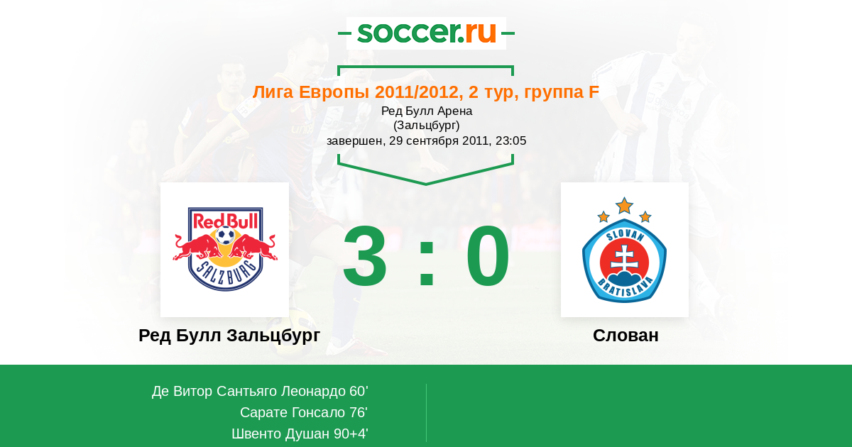 Протокол матча Ред Булл Зальцбург против Слован