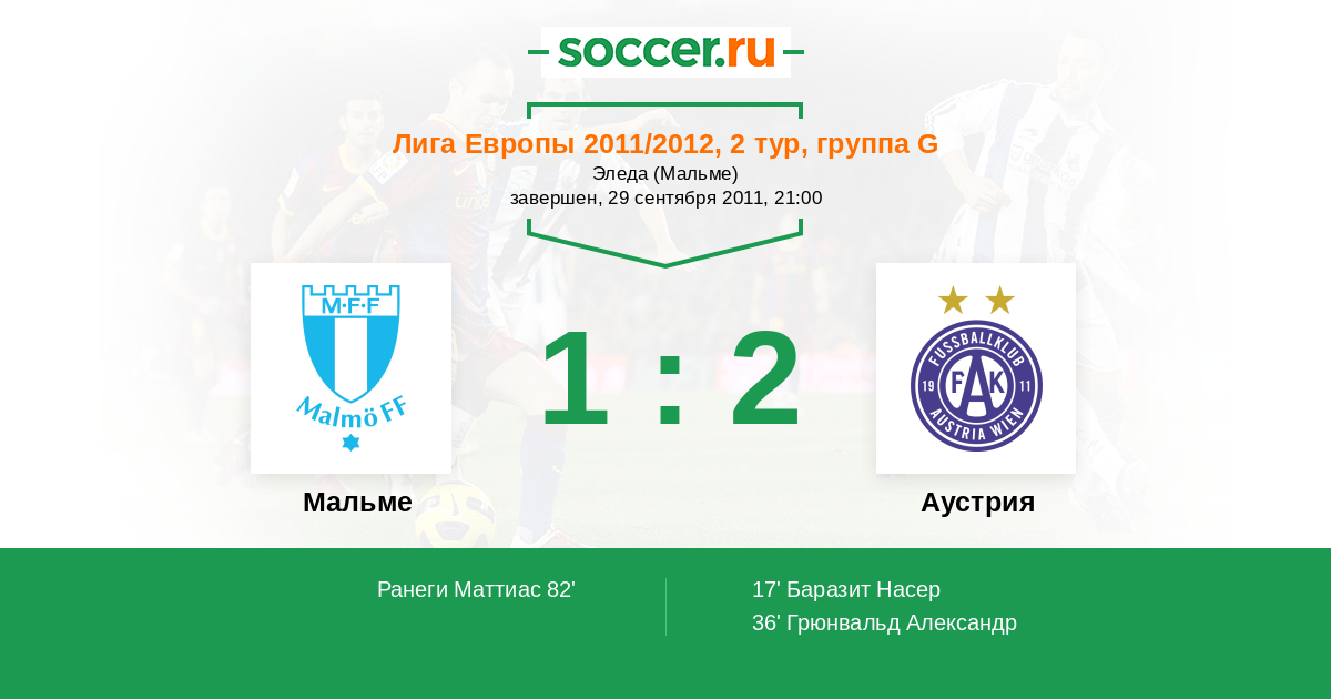 Протокол матча Мальме против Аустрия