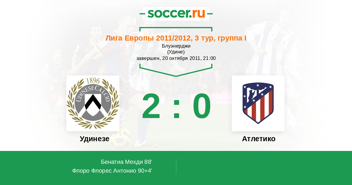 Протокол матча Удинезе против Атлетико