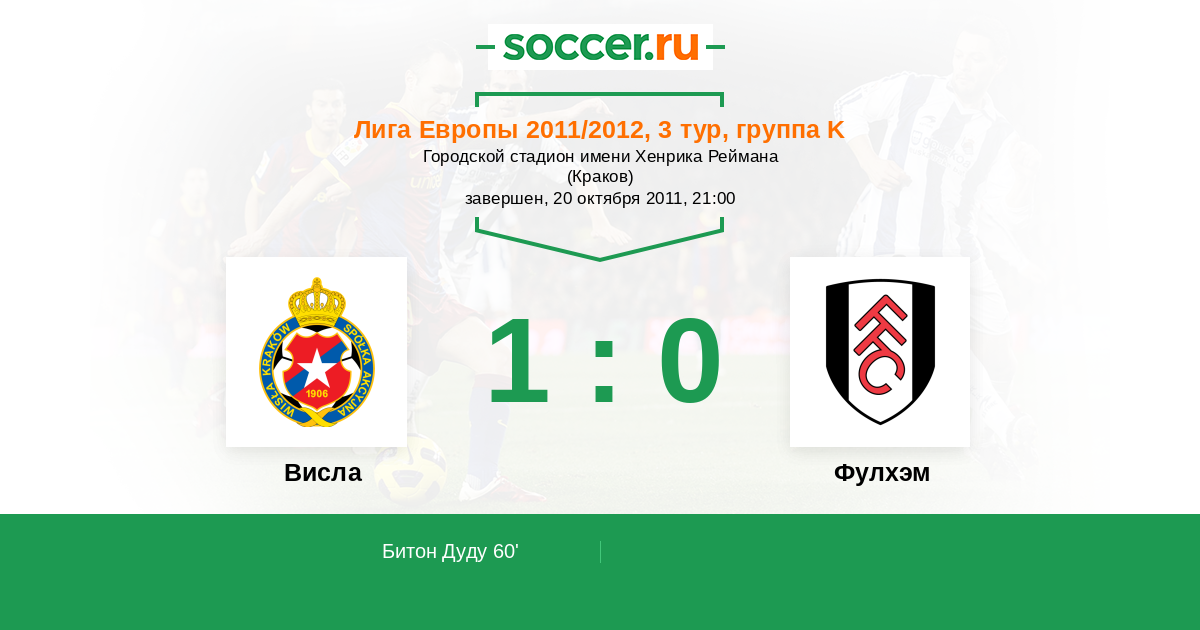 Протокол матча Висла против Фулхэм