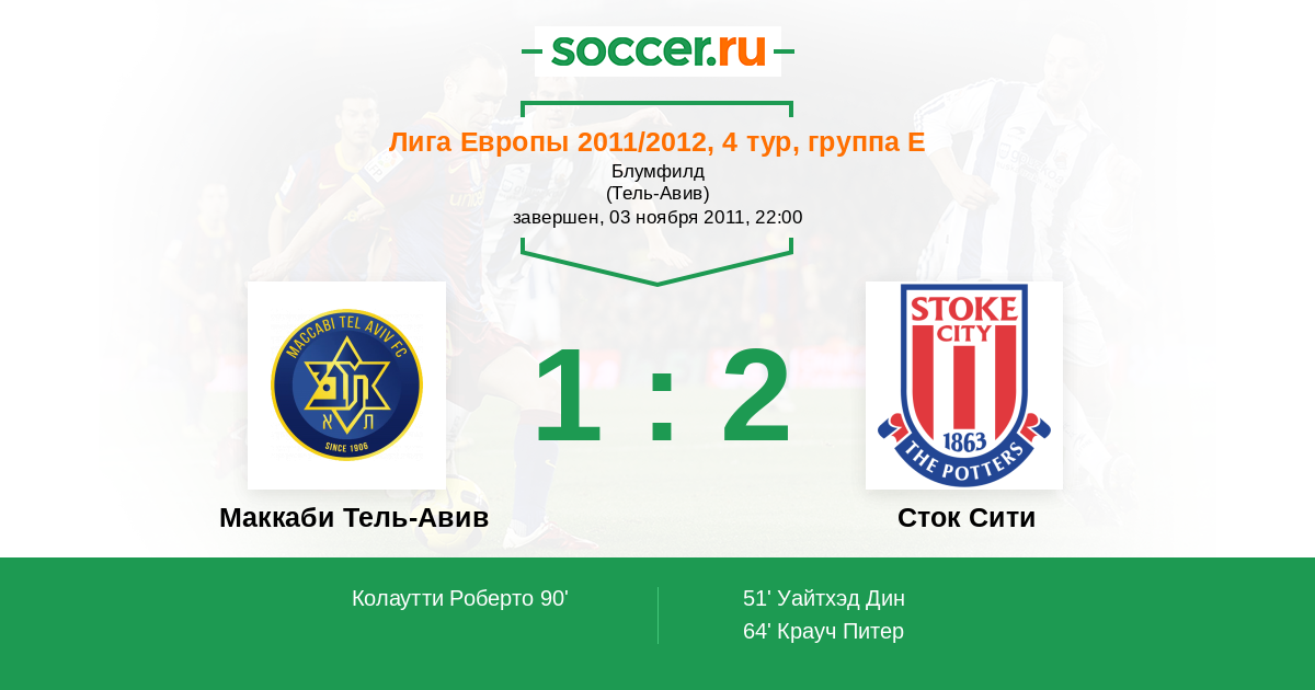 Протокол матча Маккаби Тель-Авив против Сток Сити