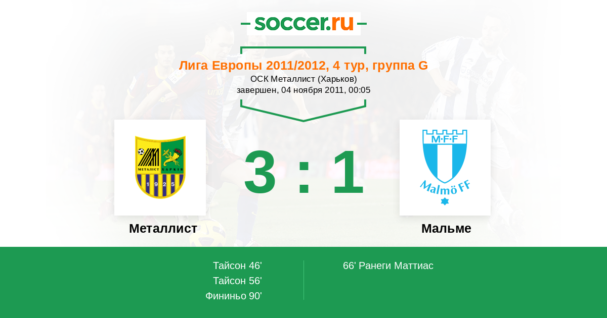 Протокол матча Металлист против Мальме