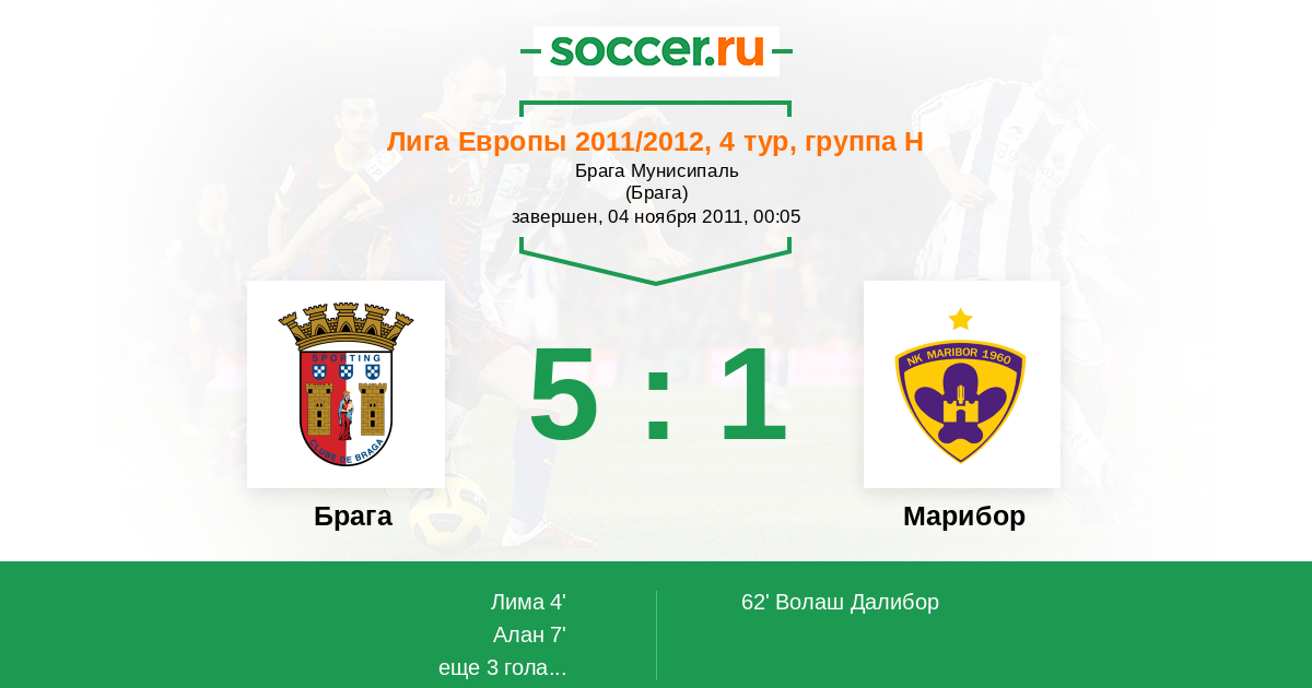 Протокол матча Брага против Марибор