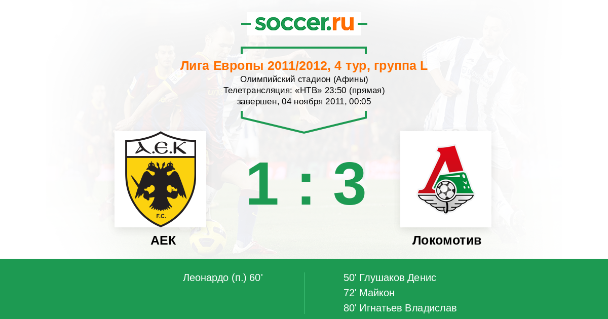 Протокол матча АЕК против Локомотив