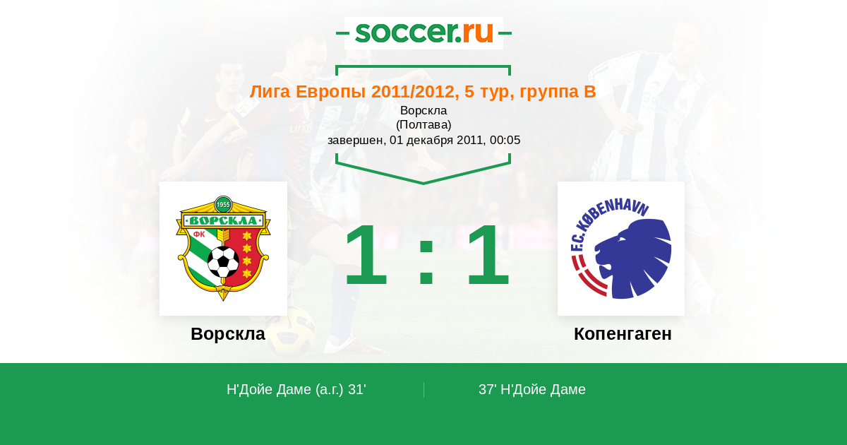 Протокол матча Ворскла против Копенгаген