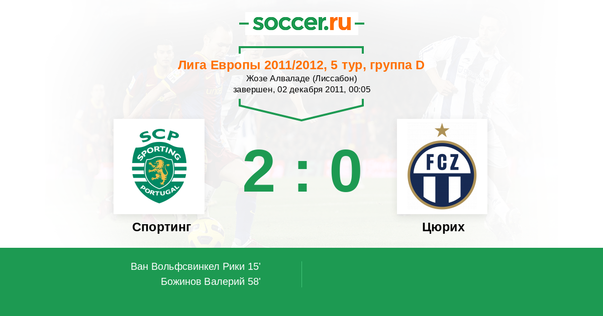 Протокол матча Спортинг против Цюрих