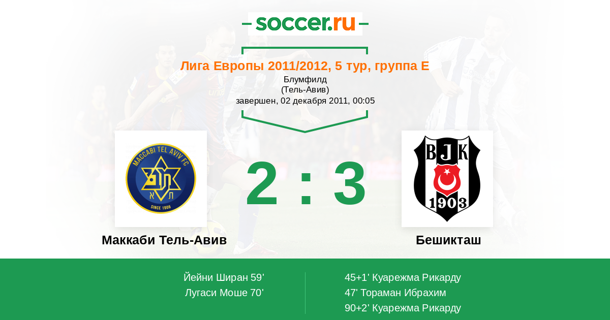 Протокол матча Маккаби Тель-Авив против Бешикташ