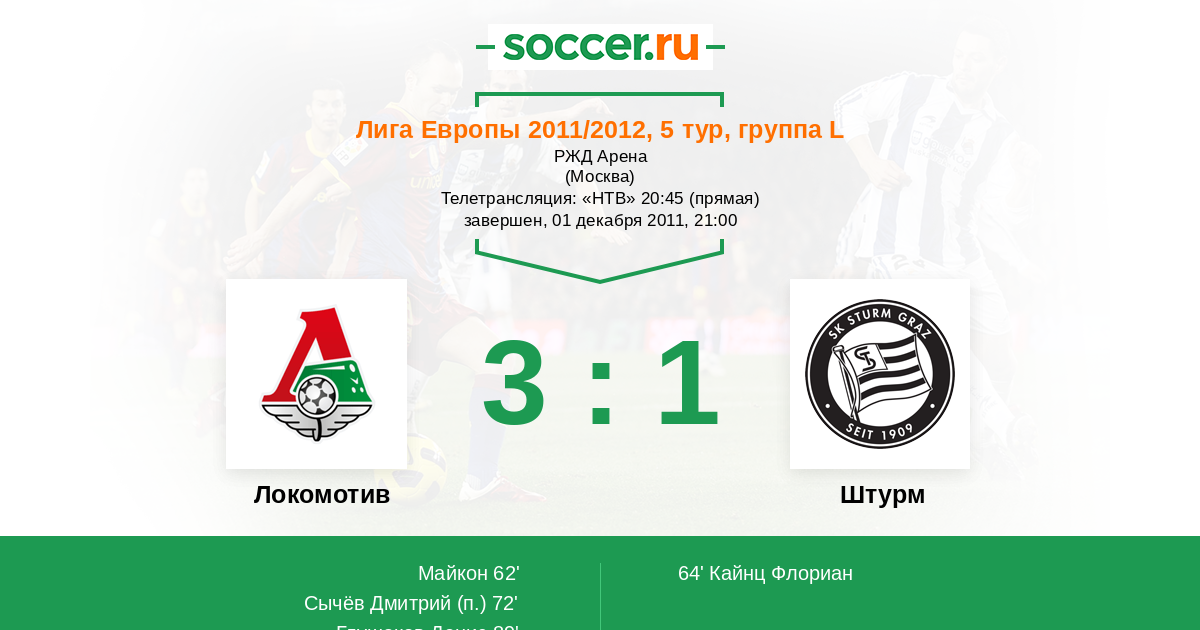 Протокол матча Локомотив против Штурм