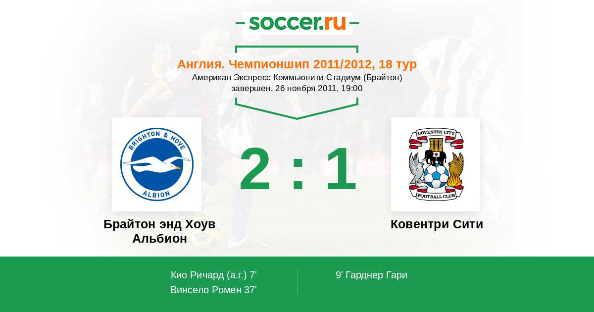 Протокол матча Брайтон энд Хоув Альбион против Ковентри Сити