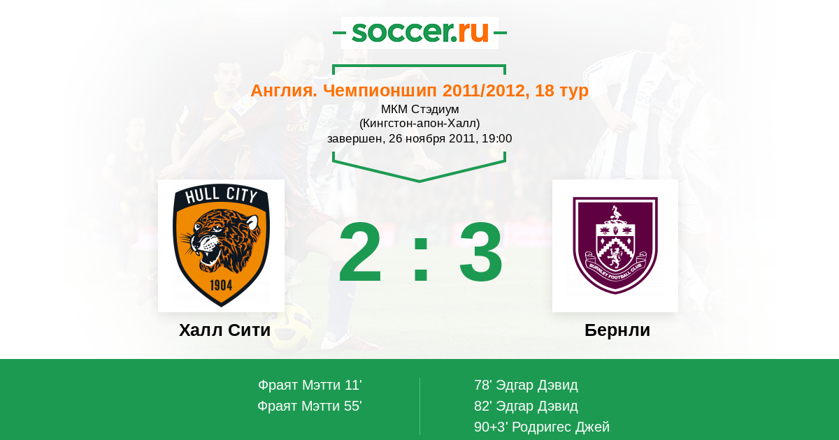 Протокол матча Халл Сити против Бернли