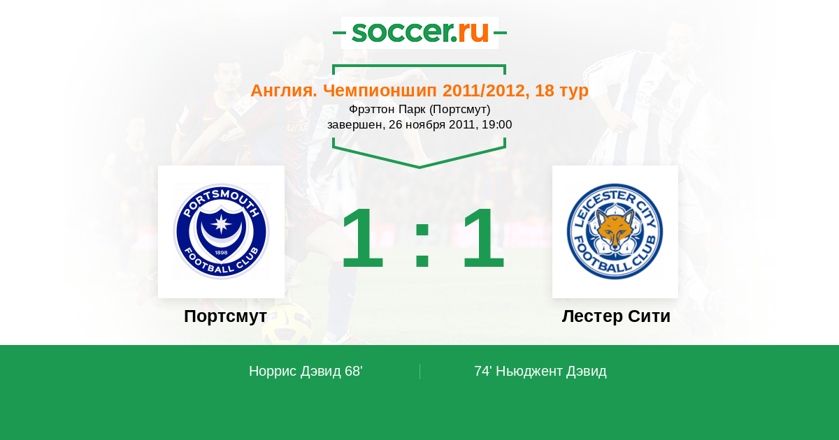 Протокол матча Портсмут против Лестер Сити