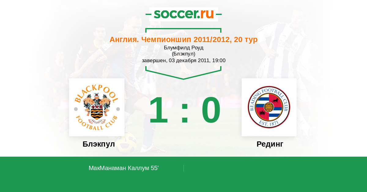 Протокол матча Блэкпул против Рединг