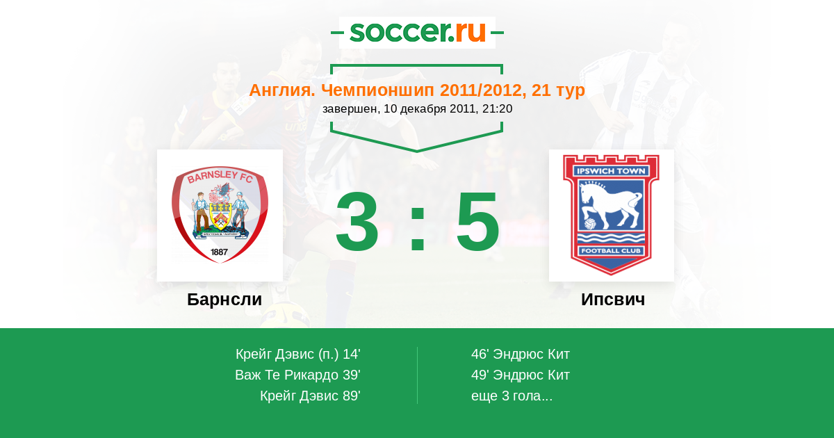 Протокол матча Барнсли против Ипсвич