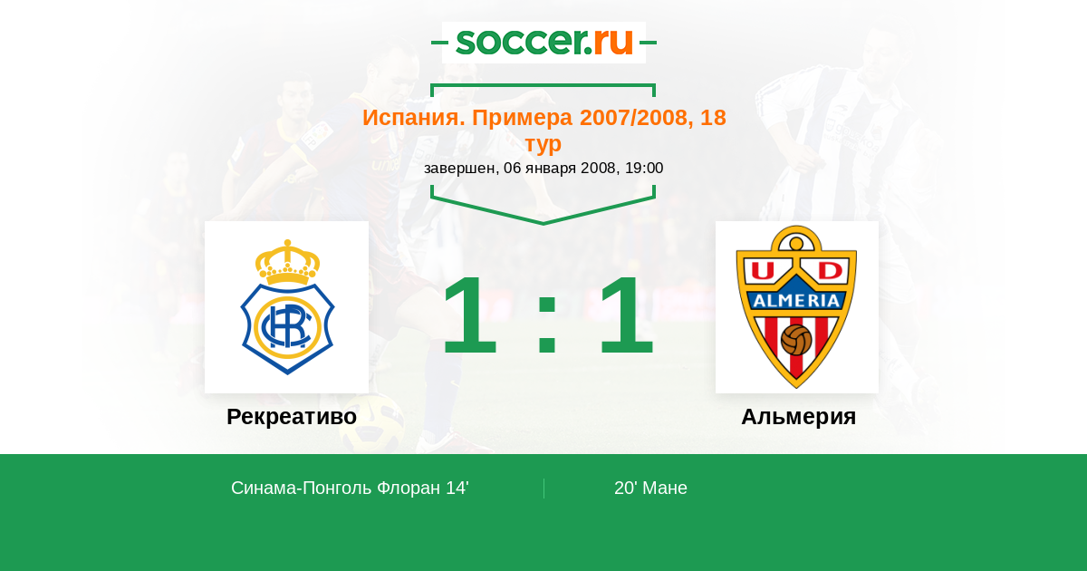 Протокол матча Рекреативо против Альмерия