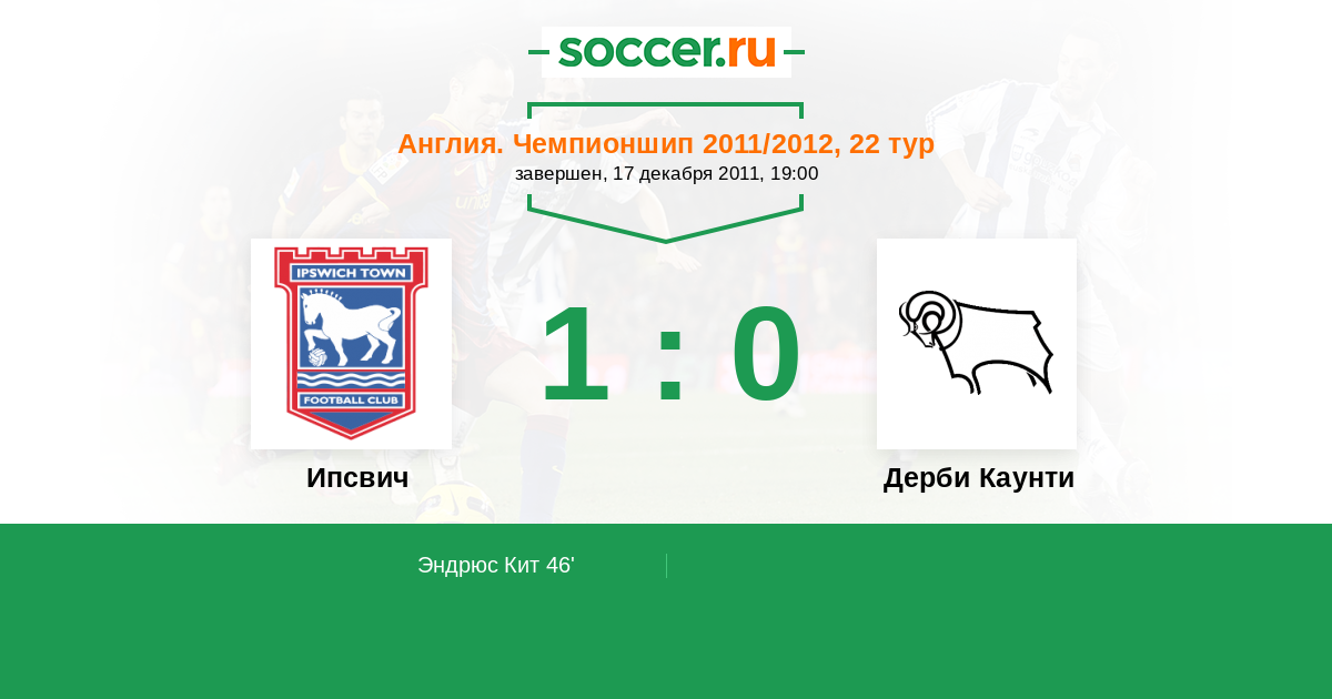 Протокол матча Ипсвич против Дерби Каунти