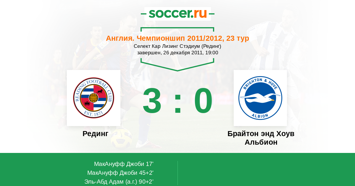 Протокол матча Рединг против Брайтон энд Хоув Альбион