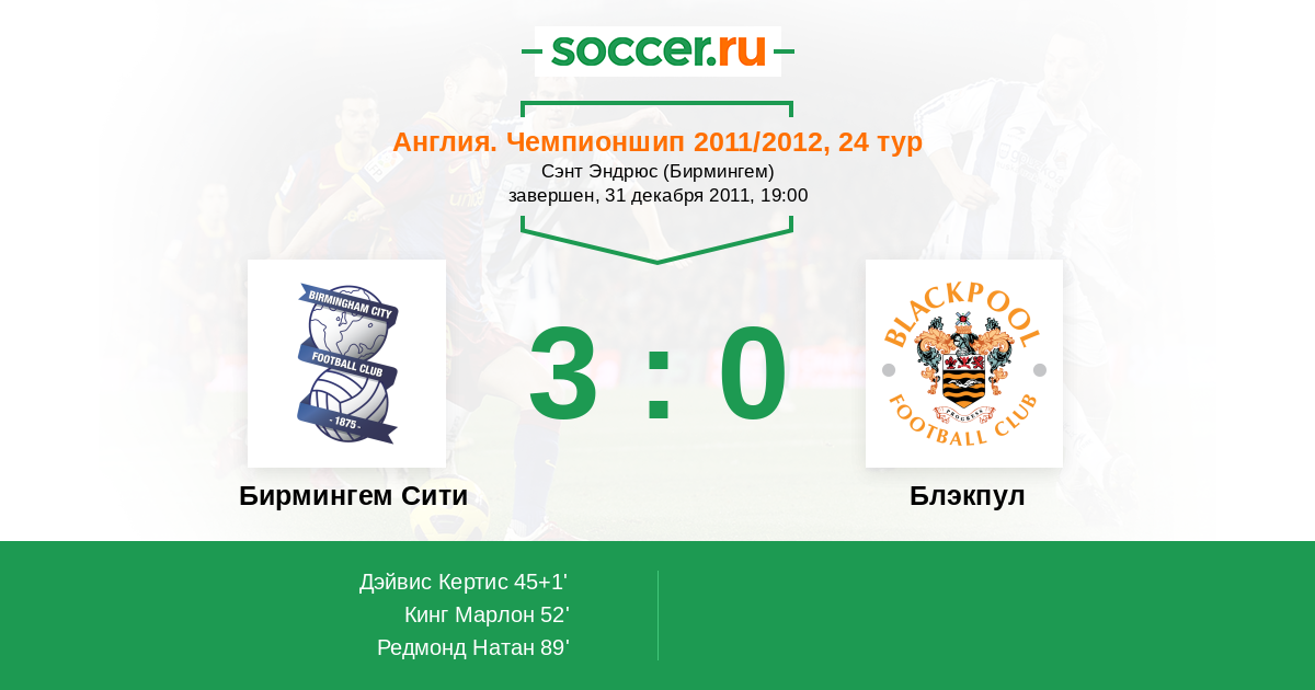 Протокол матча Бирмингем Сити против Блэкпул