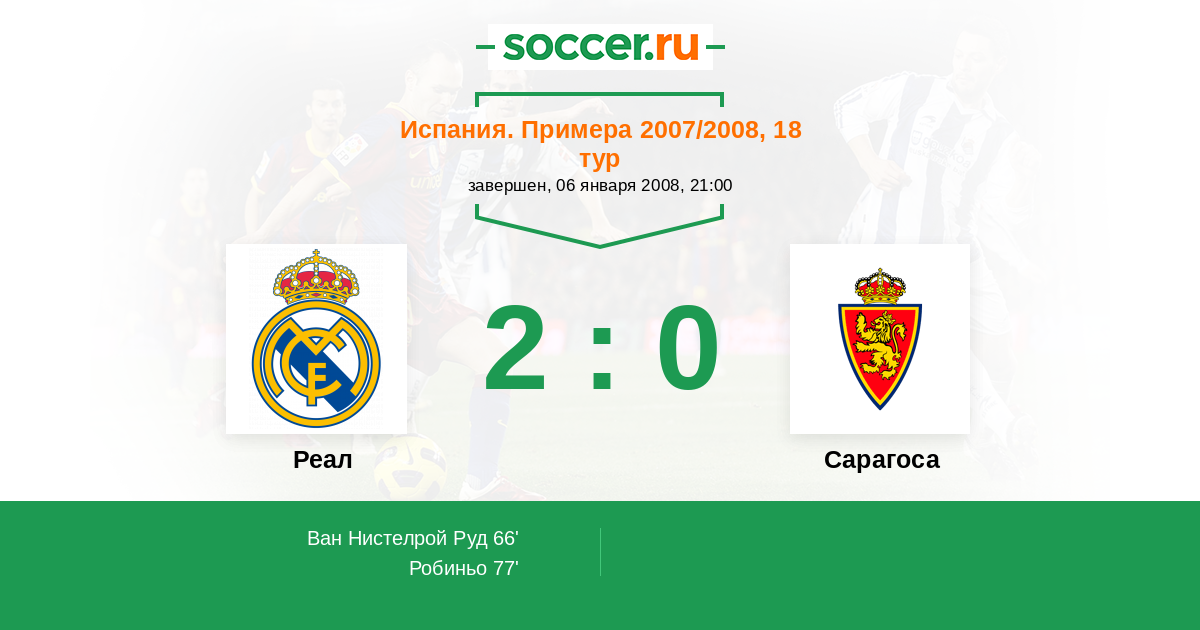 Протокол матча Реал против Сарагоса