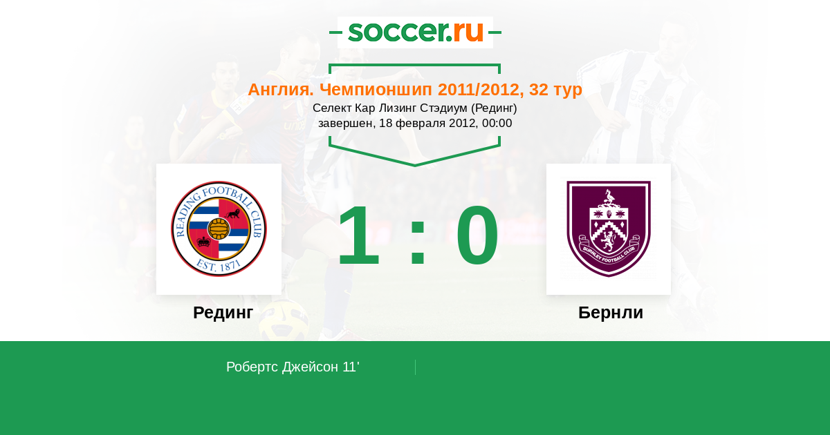 Протокол матча Рединг против Бернли