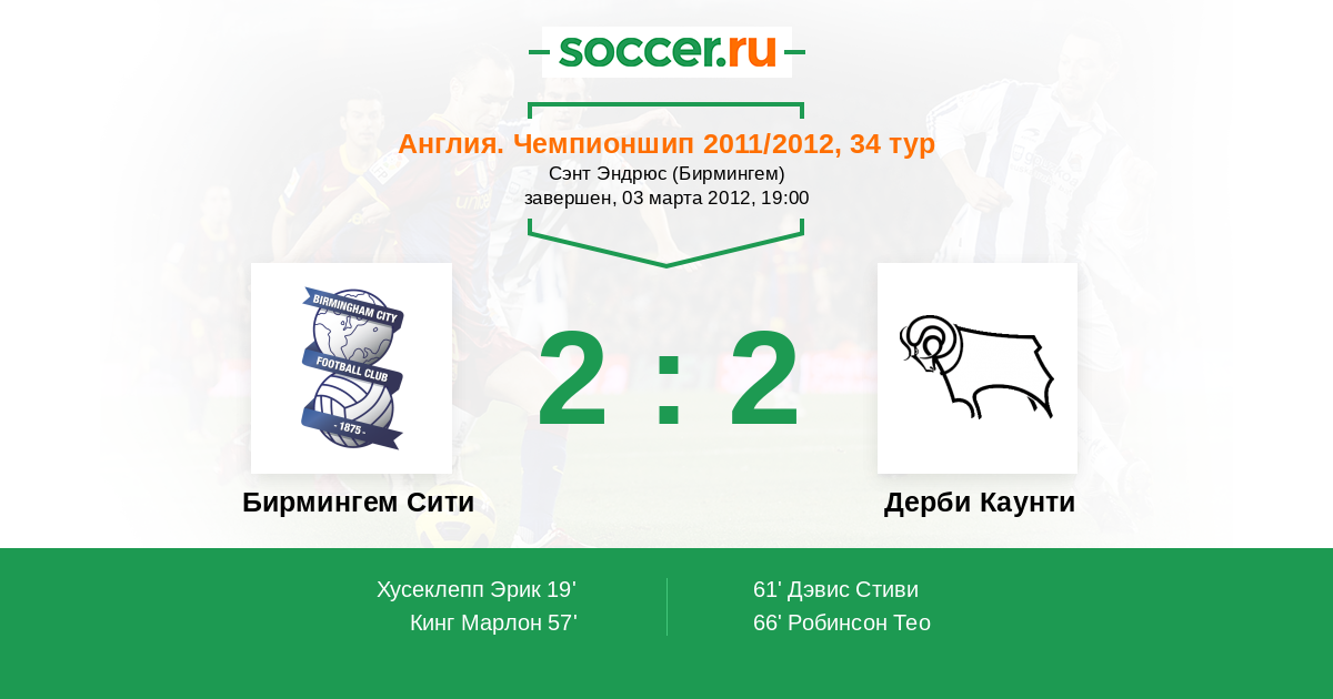Протокол матча Бирмингем Сити против Дерби Каунти