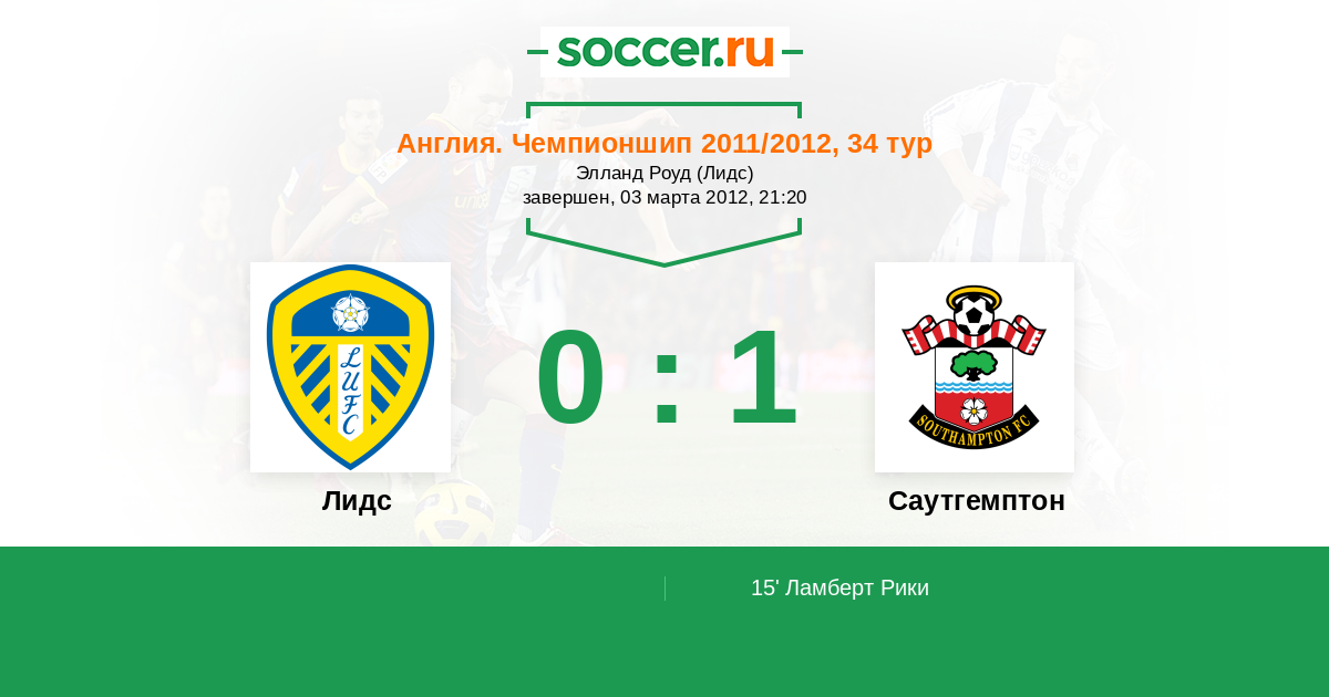 Протокол матча Лидс против Саутгемптон
