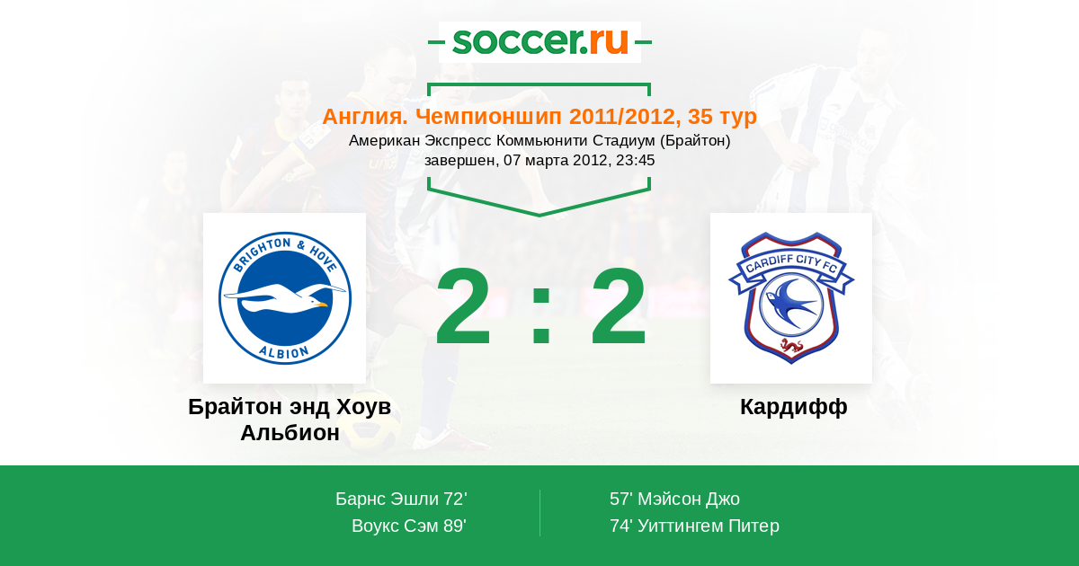 Протокол матча Брайтон энд Хоув Альбион против Кардифф