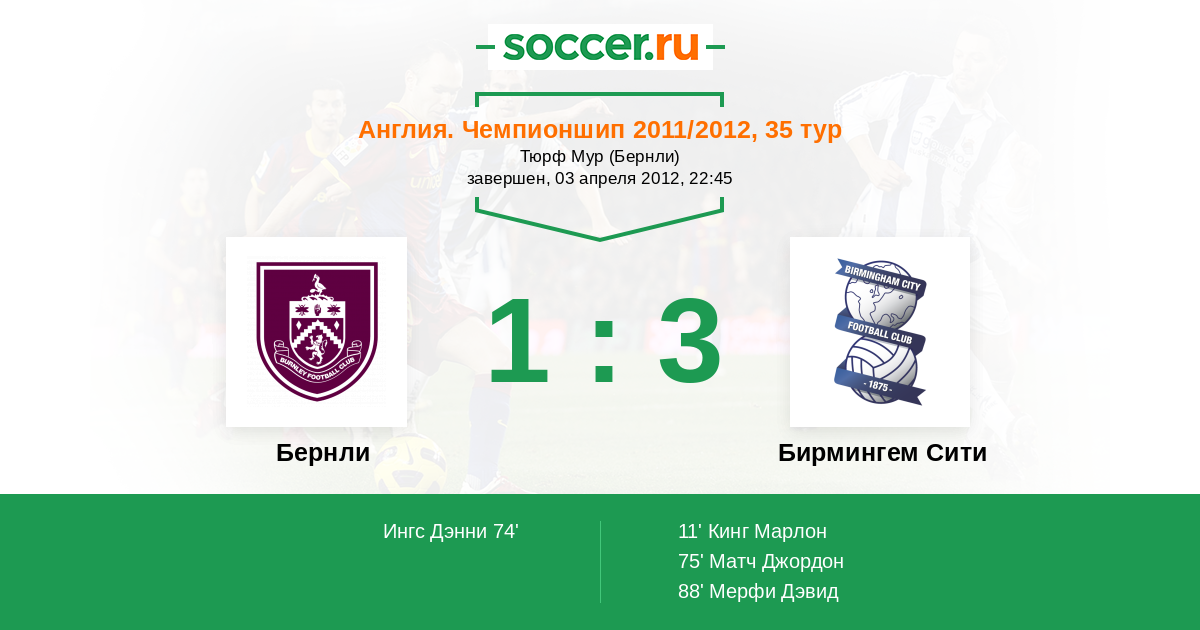 Протокол матча Бернли против Бирмингем Сити