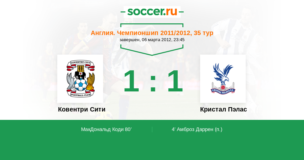 Протокол матча Ковентри Сити против Кристал Пэлас