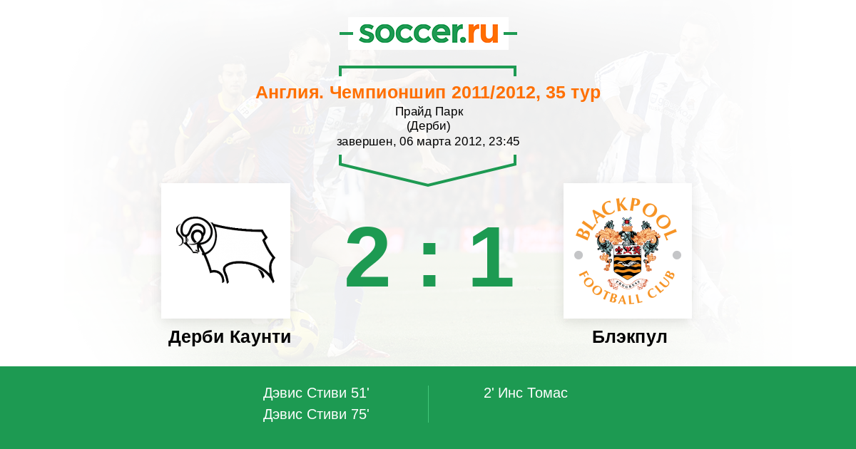 Протокол матча Дерби Каунти против Блэкпул