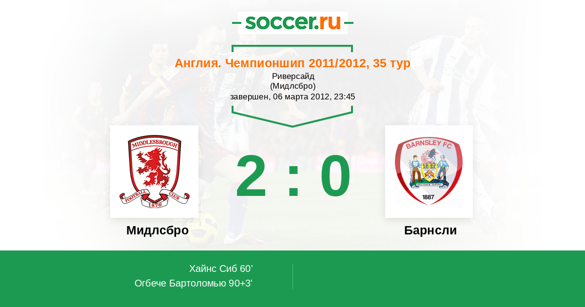 60' (1:0) Хайнс Сиб (15) (Робсон Бэрри (17))
