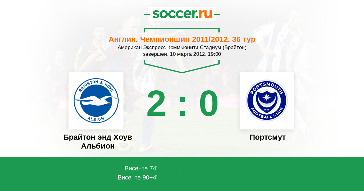 Протокол матча Брайтон энд Хоув Альбион против Портсмут