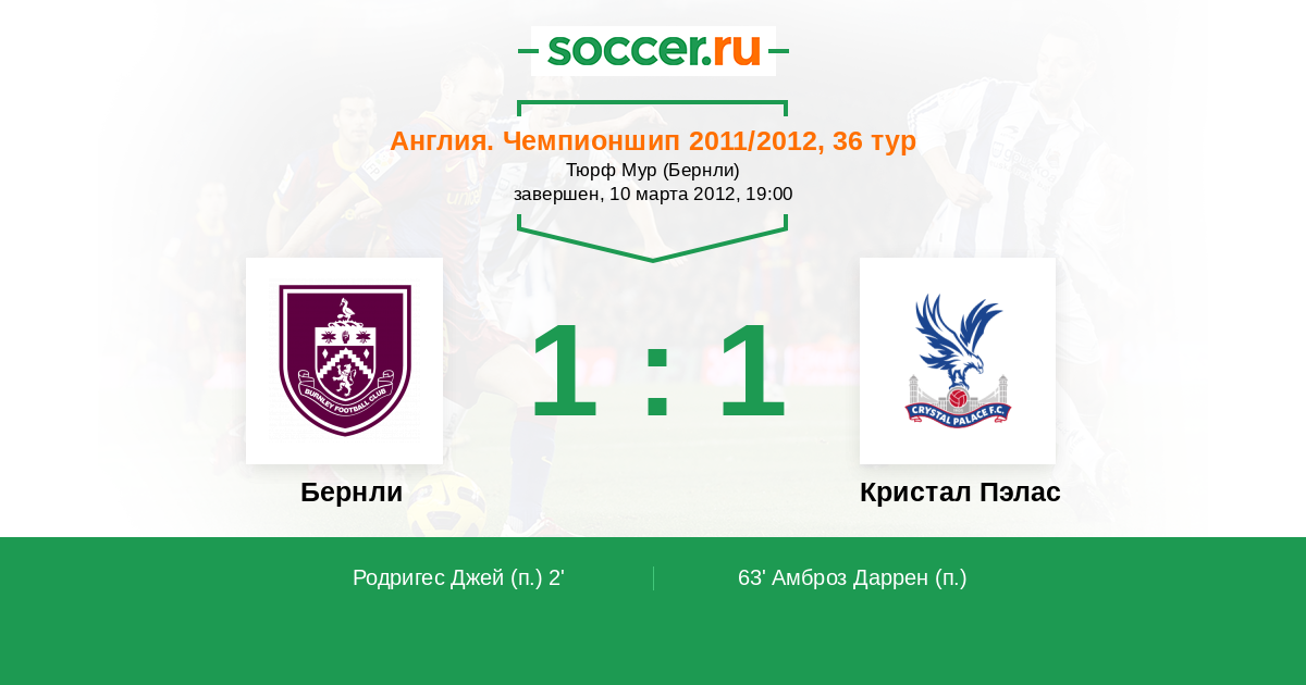 Протокол матча Бернли против Кристал Пэлас