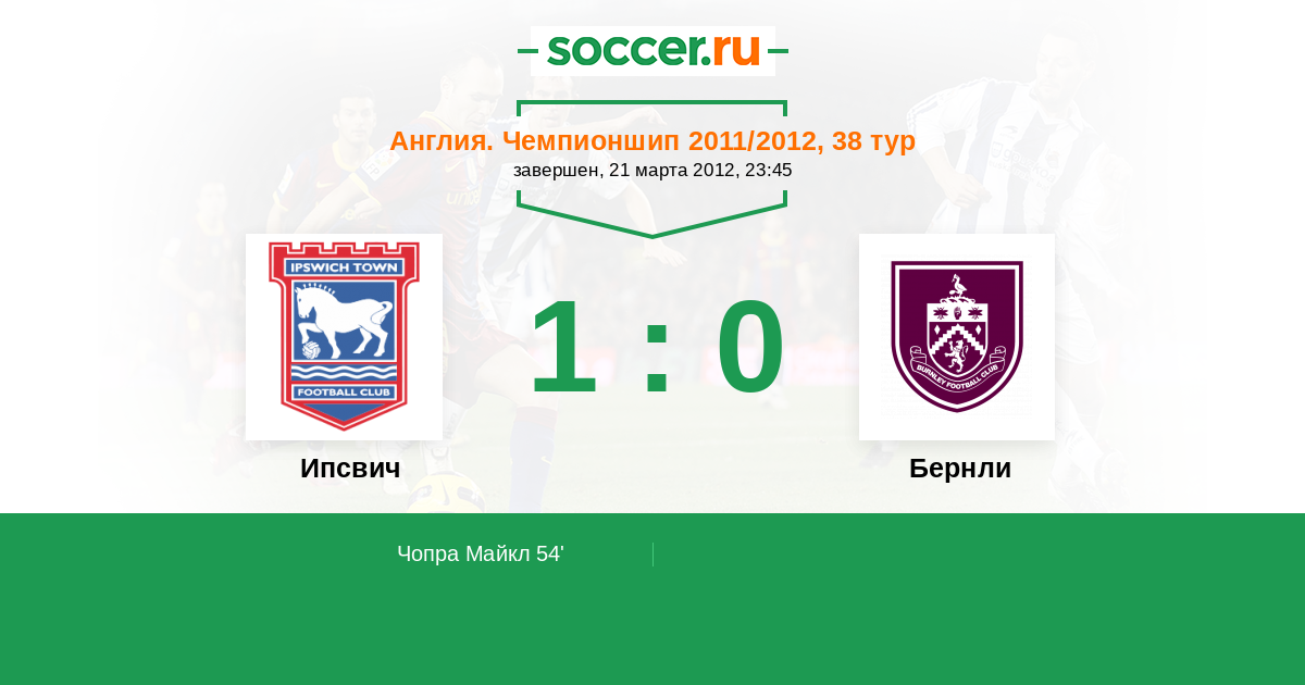 Протокол матча Ипсвич против Бернли