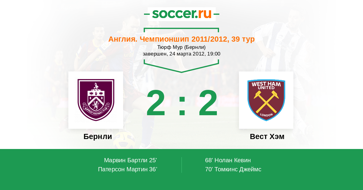 Протокол матча Бернли против Вест Хэм