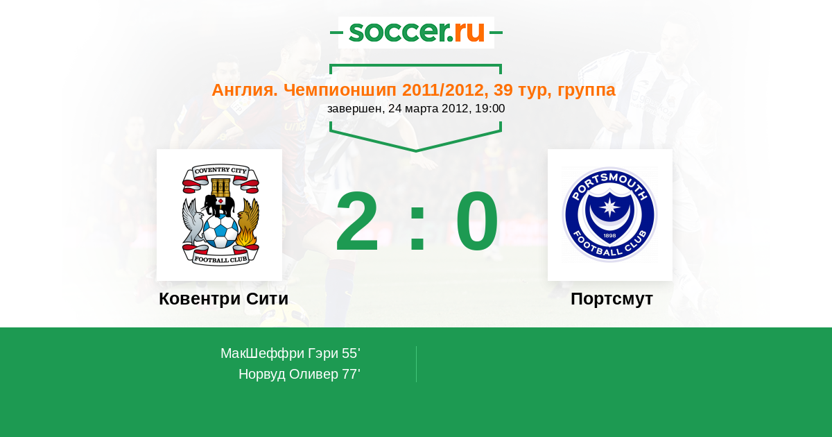 Протокол матча Ковентри Сити против Портсмут