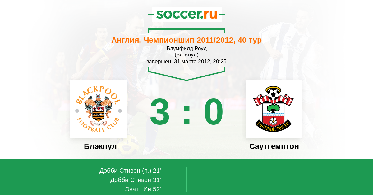Протокол матча Блэкпул против Саутгемптон