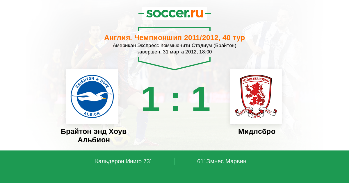 Протокол матча Брайтон энд Хоув Альбион против Мидлсбро