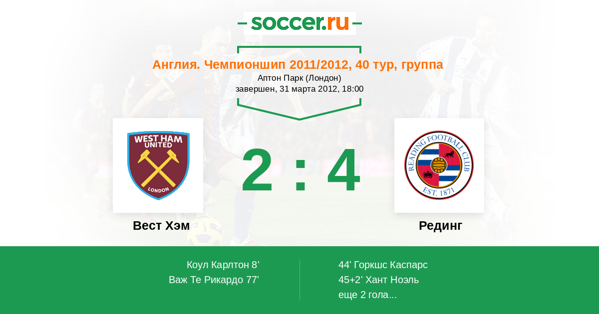 Протокол матча Вест Хэм против Рединг