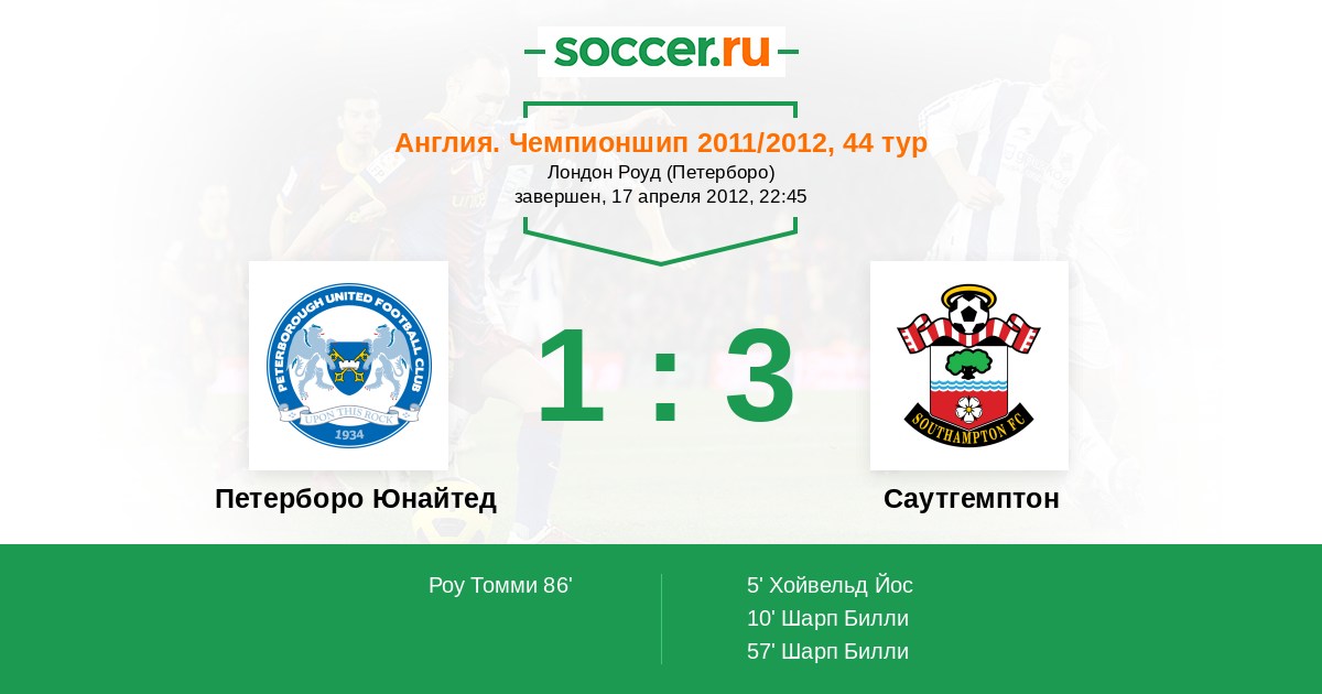 Протокол матча Петерборо Юнайтед против Саутгемптон