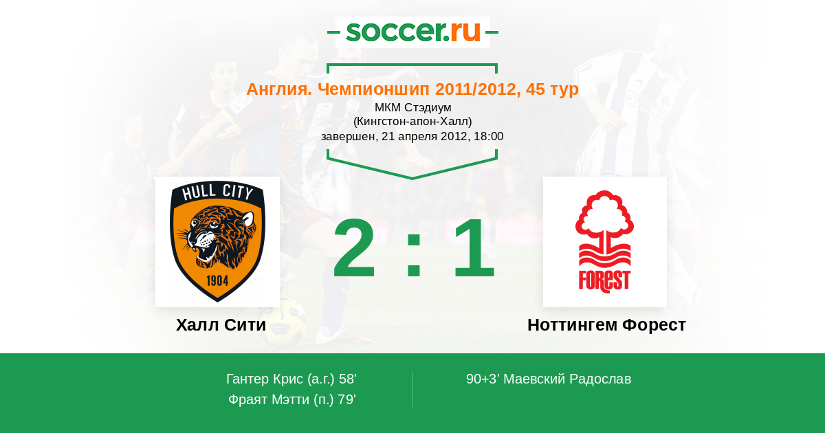 Протокол матча Халл Сити против Ноттингем Форест