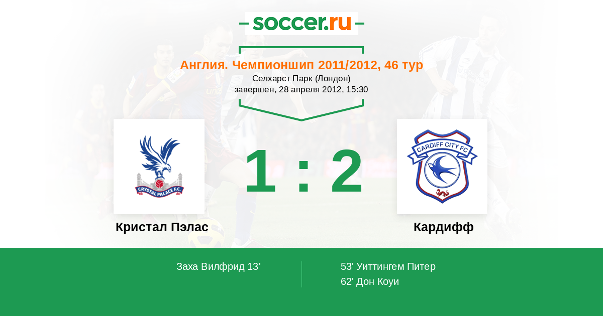 Протокол матча Кристал Пэлас против Кардифф