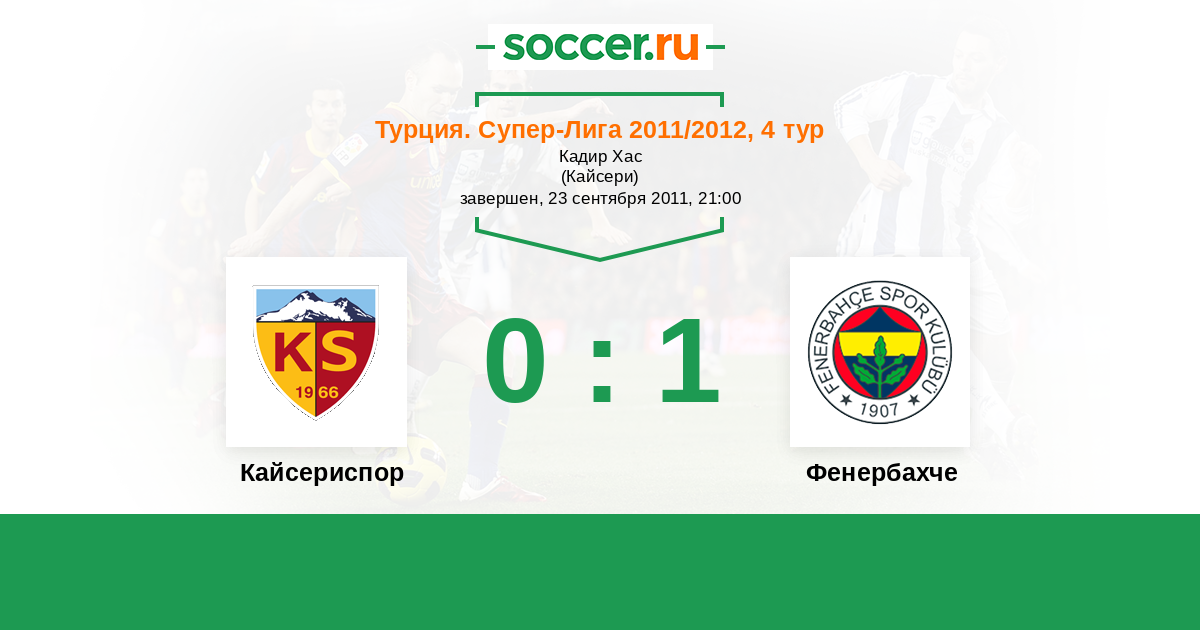 Турция. Суперлига 21.01.2012 Фенербахче Логотип футбольный клуб Фенербахче (Стамбул) 4:0 Логотип футбольный клуб Кайсериспор Кайсериспор